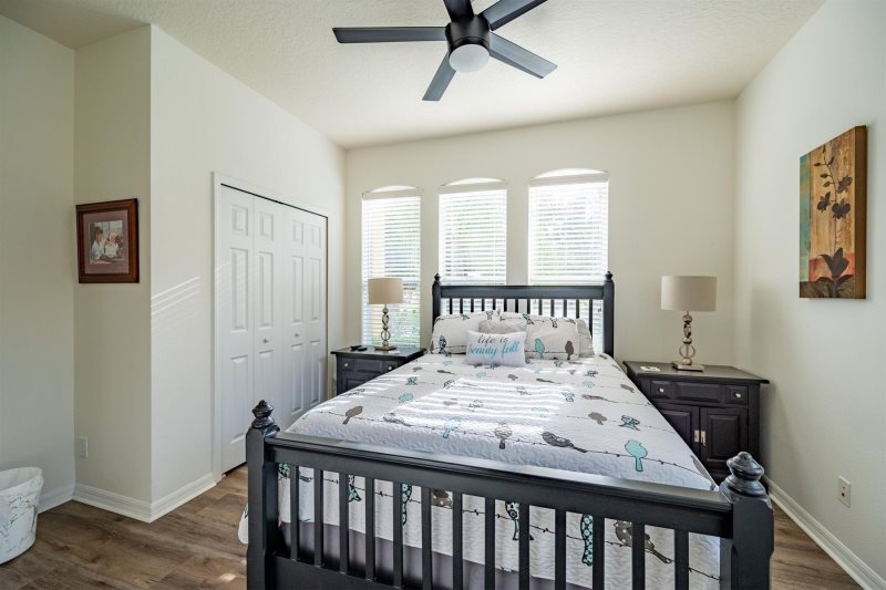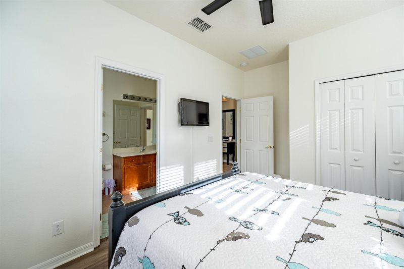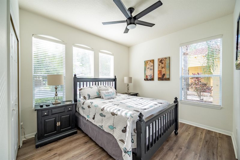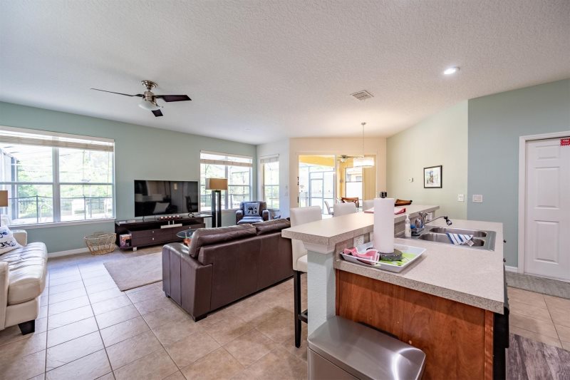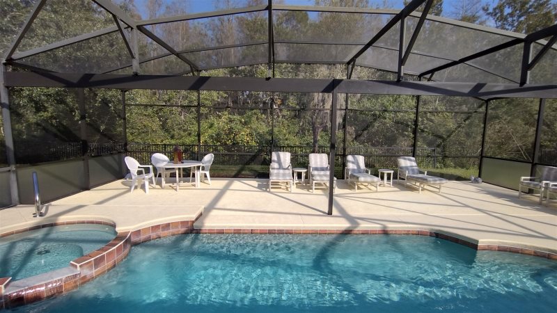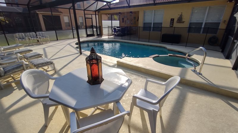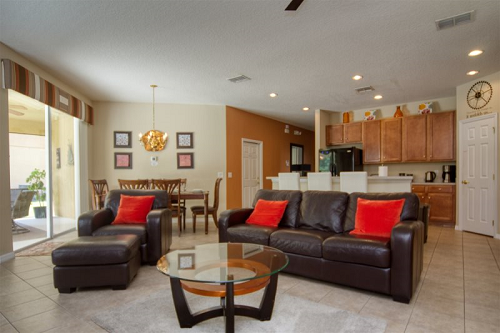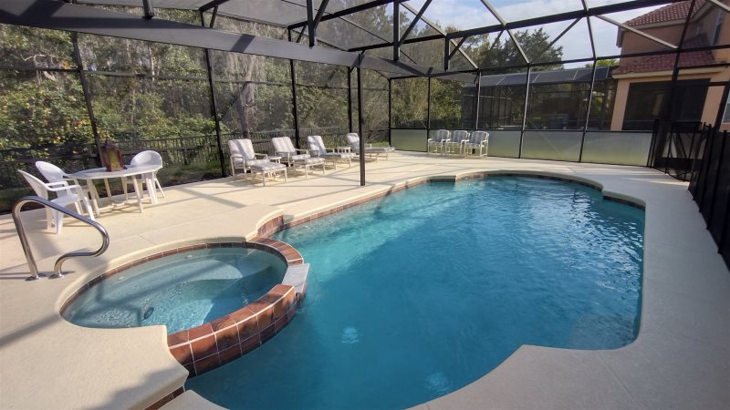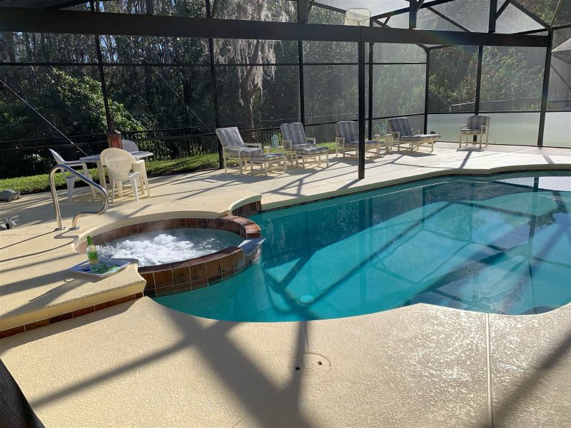 Amenities within the home includes TVs, DVDs in all the bedrooms and living area, free High Speed Internet service and a private pool and spa with an uninterrupted rear conservation views. In addition this home offers 4 master suites with a 1 king bed, 2 queen beds and one bedroom with 2 twin beds.