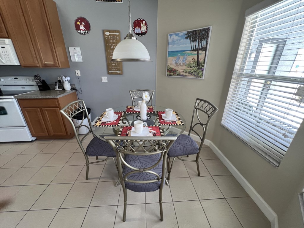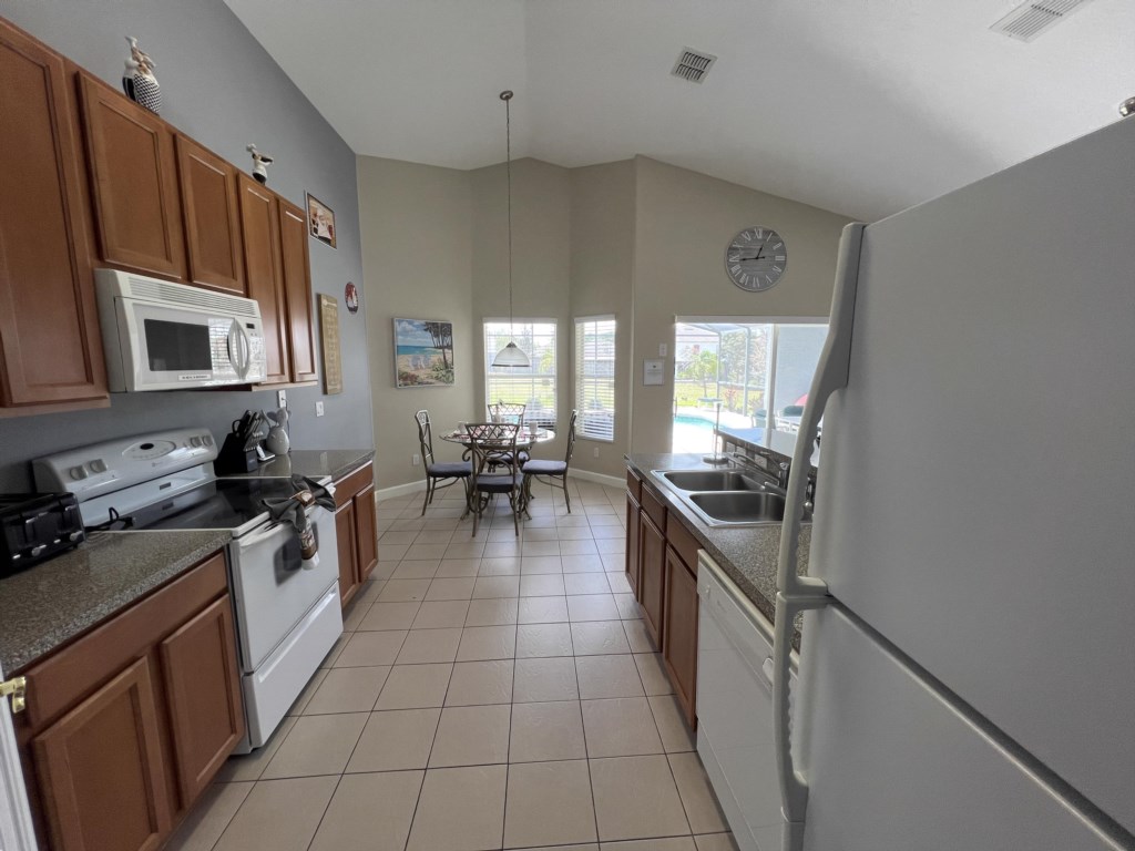 The fully equipped kitchen along with a full-size washing machine and dryer make this home a true “Home Away From Home”!