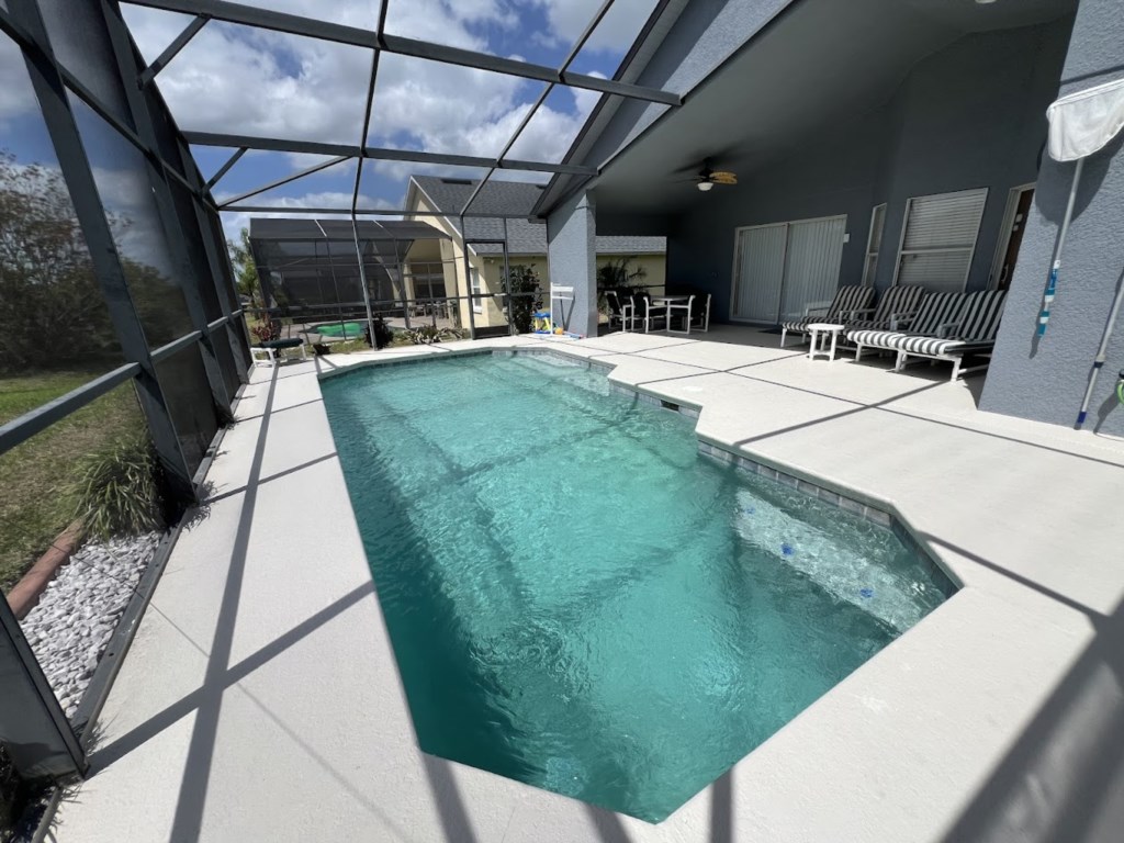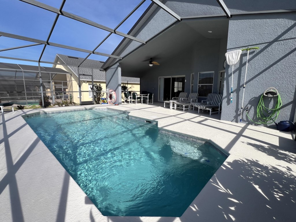 Enjoy the south facing private swimming pool with a large covered lanai, a games room with a pool table and air hockey table, cable TV in the living room and all the bedrooms have Roku TV for streaming.