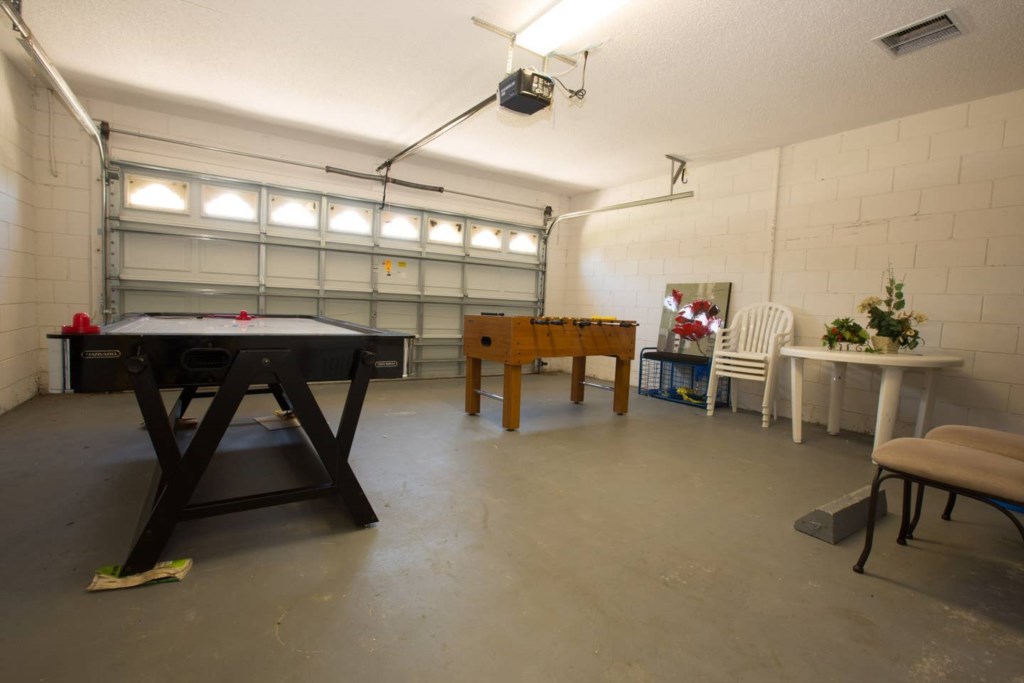 The garage was converted into a game room with a combined pool, air hockey table and a foosball table.