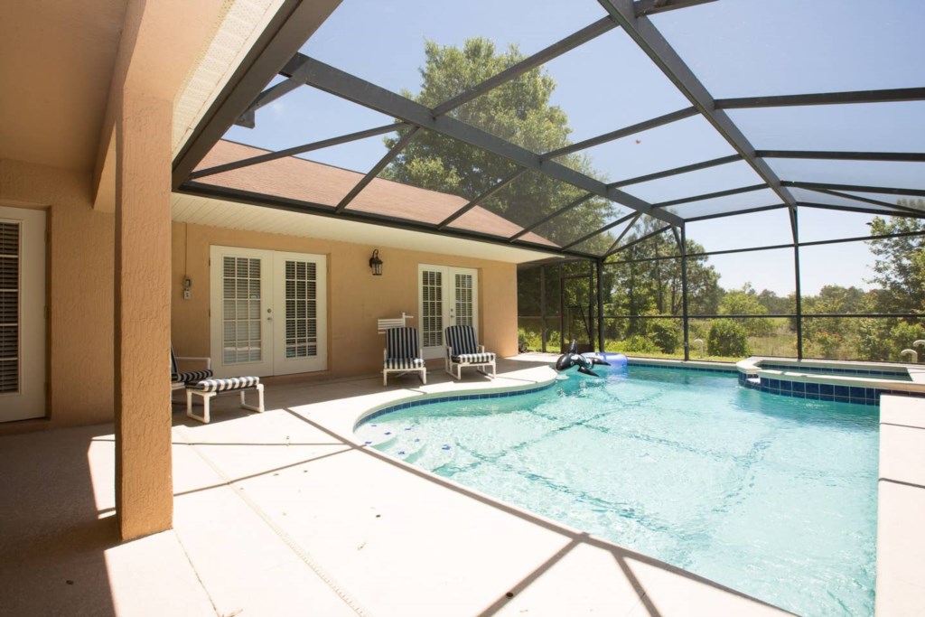 Our beautiful home offers a game room, a south facing pool with spa, a covered lanai, ample seating and a relaxing conservation view.